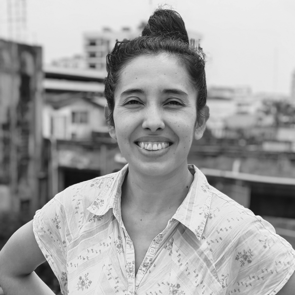 (Guayaquil, Ecuador) Bailarina de Chimborazo radicada en Guayaquil. Indaga en el movimiento desde los cuerpos y las sensibilidades en conexión con los espacios y las escrituras. Acompaña procesos pedagógicos en danza.