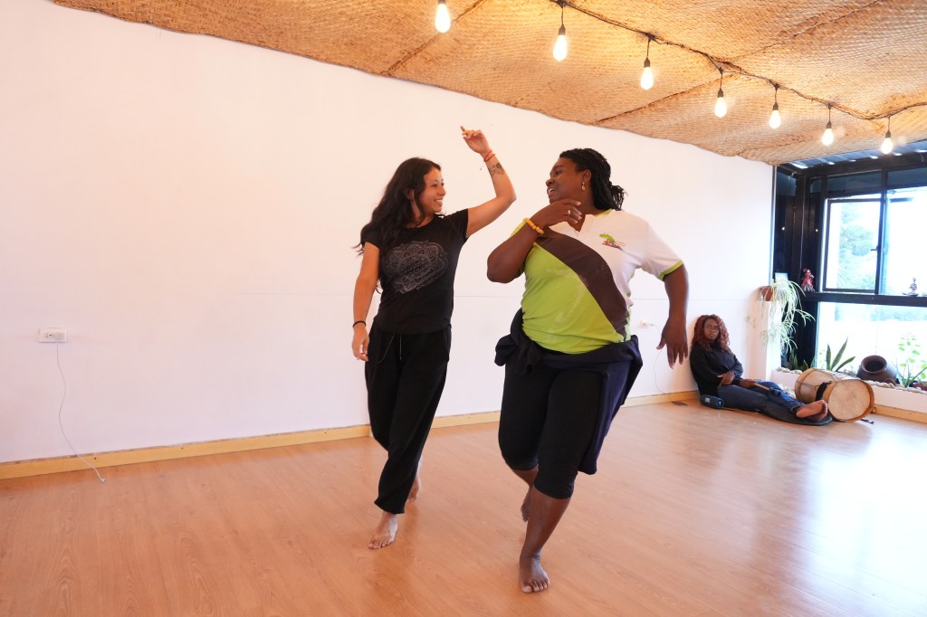 El Taller I Resistencia Bailada, es guiado por las artistas invitadas afroesmeraldeñas Érika Mideros y Nicole Preciado, quienes nos invitan a explorar dos danzas tradicionales de Esmeraldas, canoita y andarele. Una forma de preservar la identidad, la memoria y la espiritualidad de su pueblo.