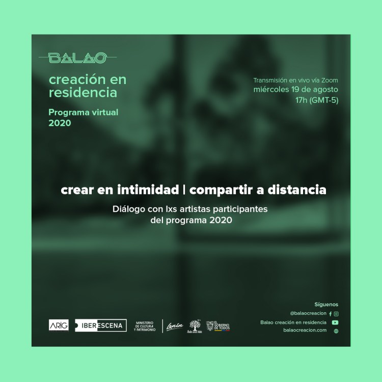 Después del proceso de creación en residencia desde casa que incluyó encuentros virtuales entre lxs participantes del Programa 2020, los siete artistas residentes desplegaron un diálogo en torno a la creación en danza desde la intimidad del hogar, atravesadxs por sus contextos y sus temas de investigación/creación.