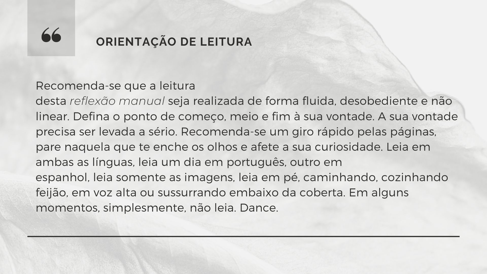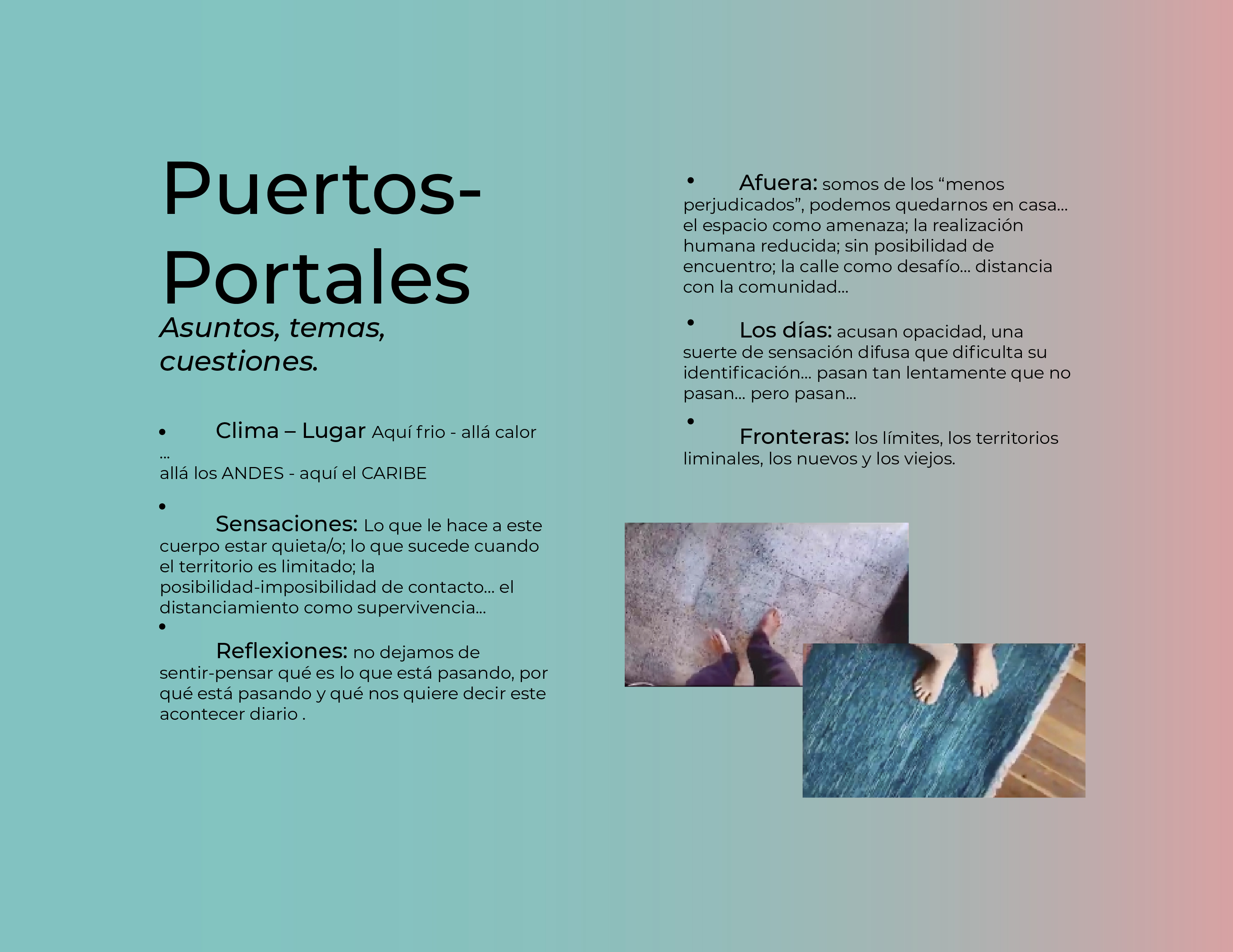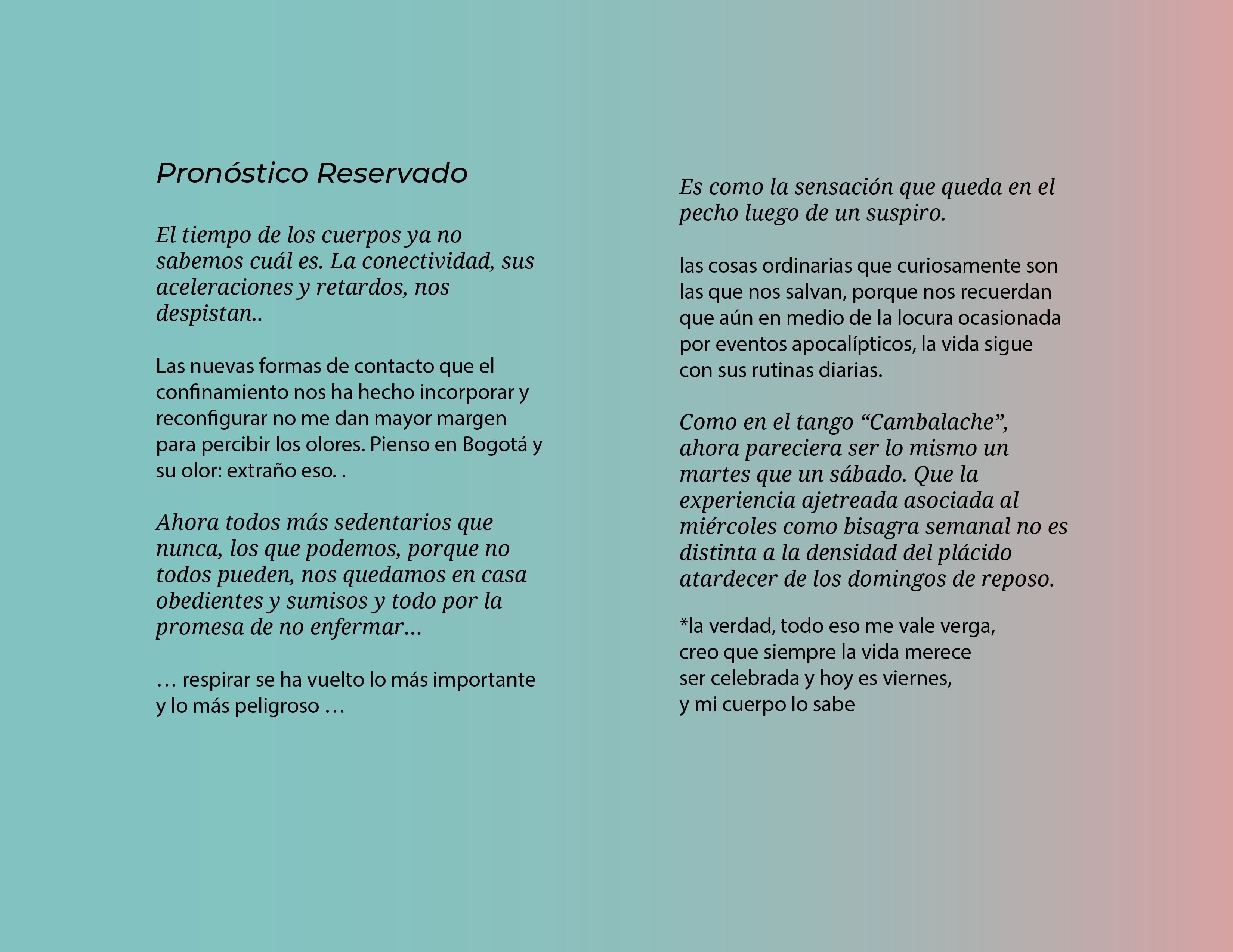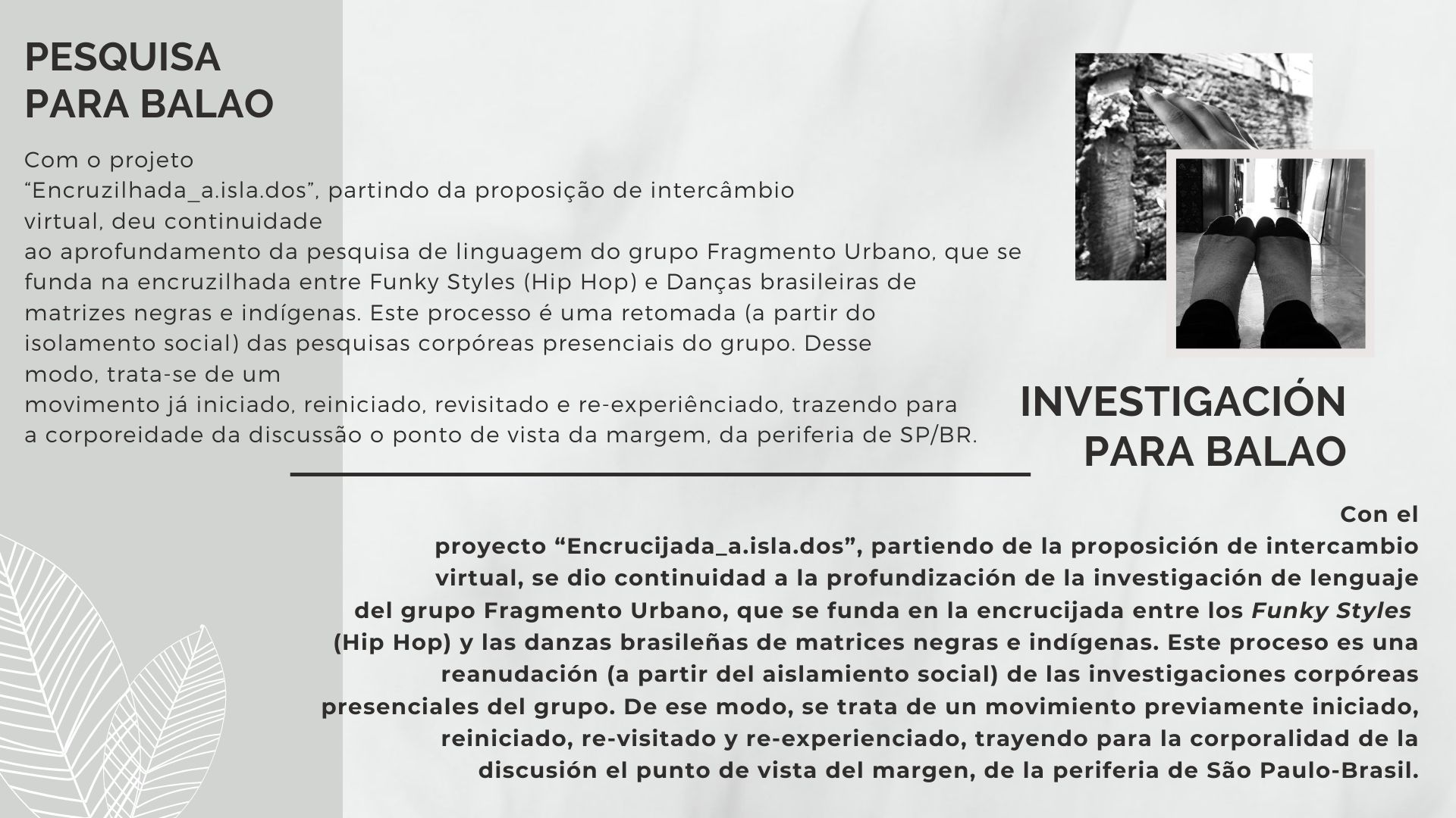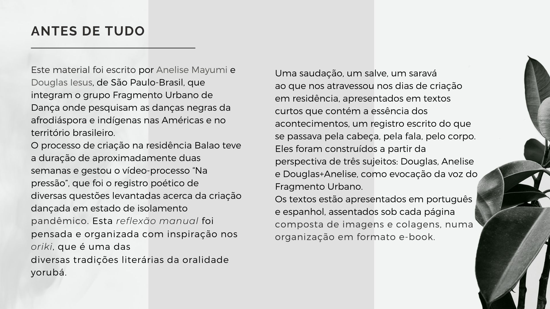 El Programa de creación en residencia Balao 2020 consistió en la realización de 5 residencias de creación con la participación de 7 artistas en 6 ciudades distintas durante alrededor de 21 días. Como parte de los procesos de creación/investigación propusimos a las artistas elaborar una reflexión manual, como un compendio de pistas, relatos y provocaciones acerca de la creación en casa.