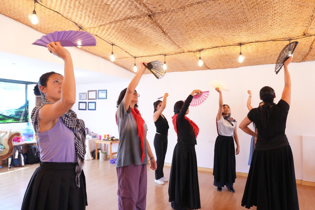 En este taller aprendimos los diferentes estados del ritmo basándonos en la estructura del Flamenco, un baile de carácter. Realizamos un viaje sensorial por medio del lenguaje universal del compás de los 12 tiempos a través de la técnica del zapateo del baile Bulerías, aplicado a una expresión coreográfica.